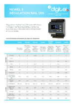 Retrouvez les caractéristiques principales de “Newel 3 régulation rail din” par type avec boîtier encastrable avec afficheur, horloge, interface bus télésurveillance et borniers embrochables…